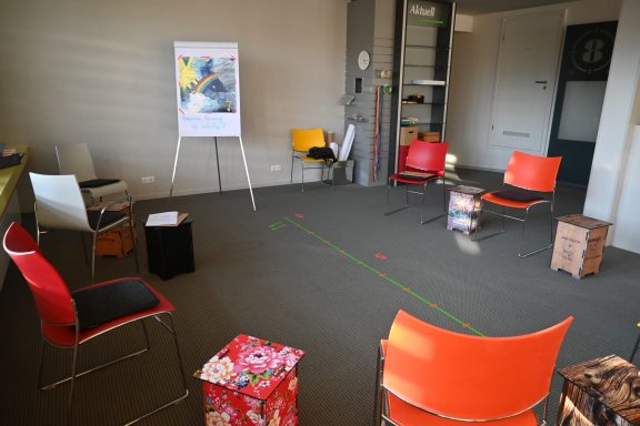 Die Seminaretage ist mehr als nur ein Seminarraum - sie ist ein liebevoll gestalteter Rückzugsort für Entwicklung, Kreativität, Fokus und neue Perspektiven. Mit viel Licht, Platz und einer warmen Atmosphäre steht uns hier eine Umgebung zur Verfügung, um uns inspierieren zu lassen, aktiv Ideen zu schmieden, kreativ Gedanken auszutauschen, mutig zu arbeiten, neugierig zu lernen, zu wachsen und Neues zu entwickeln.